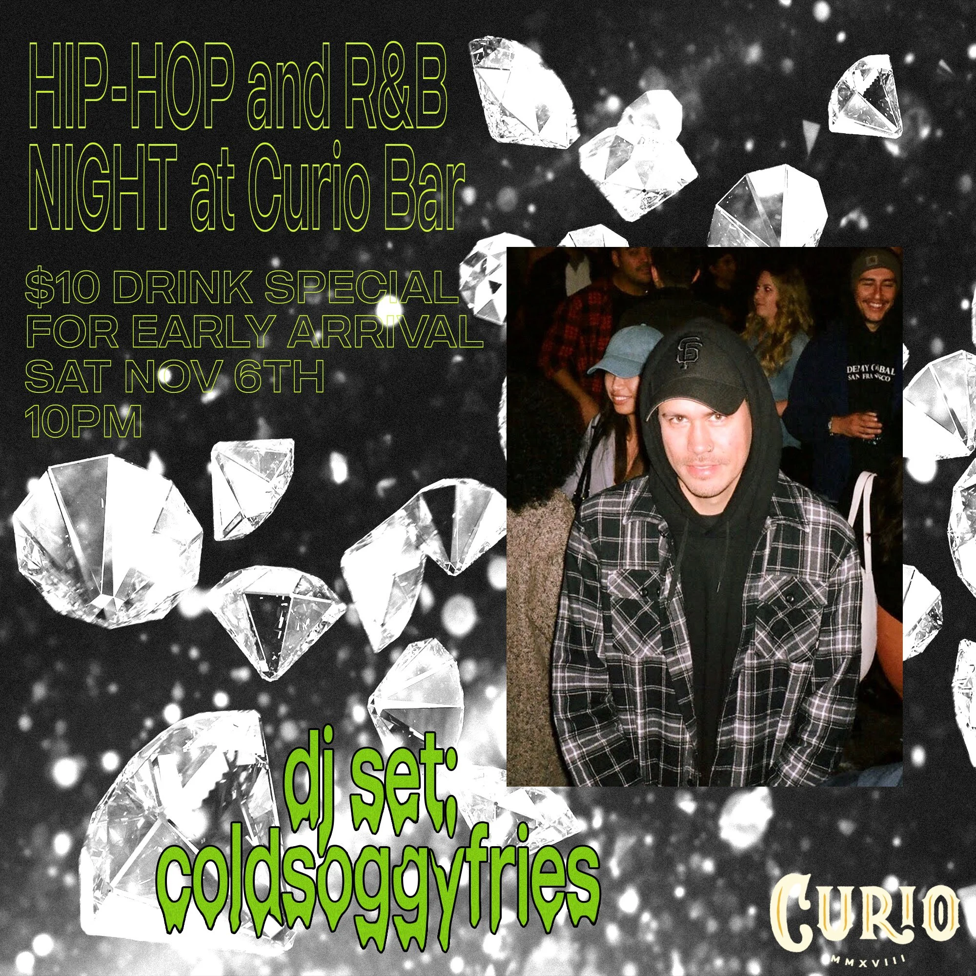 Back to All Events dj cold soggy fries Saturday, November 6, 2021 11:00 PM Sunday, November 7, 2021 2:00 AM Curio Bar 775 Valencia Street San Francisco, CA, 94110 United States (map) Google Calendar ICS